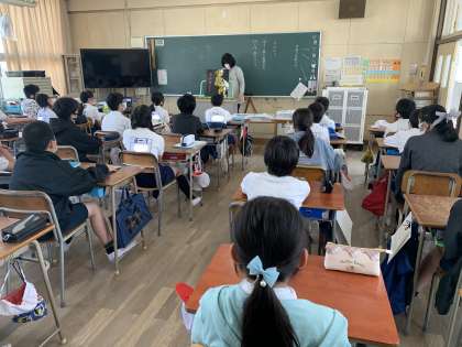 6年1組の子どもたちは熱心にお話を聞いていました。