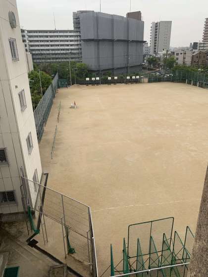 雨の日や運動場の状況が悪い日は赤コーンが朝礼台の上に立ち、外に出ることができません。