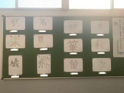 校内では、5年生の作品が掲示されていました。漢字がその意味が分かるように上手にアレンジされて、素敵な作品ができています。