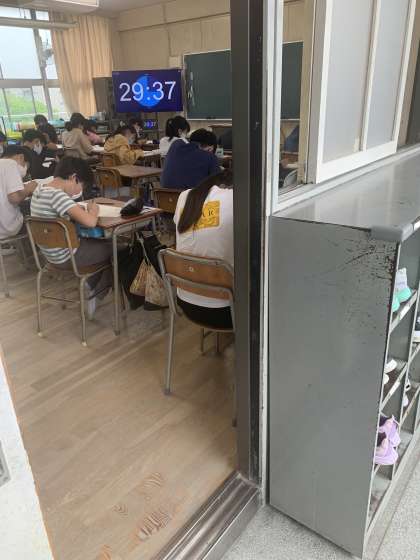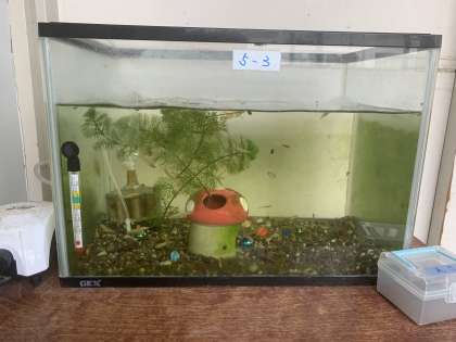 5年生のフロアには理科の時間で学習していたメダカが届いています。メダカの学校でも、みんなでお遊戯するだけでなく、現代的な諸課題について考え、テストが行われているのかもしれませんね。