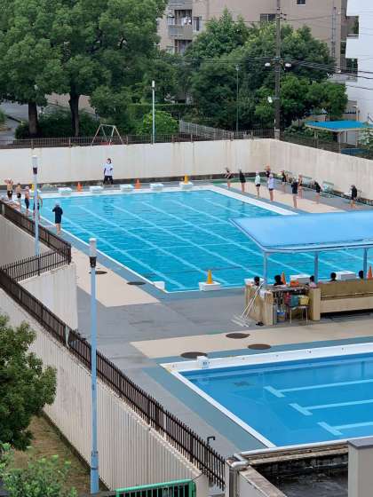 午前中の水泳授業は雨のため中止になってしまいましたが、5時間目は何とか雨のやみ間にあたり、実施することができています。