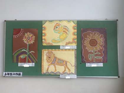 校舎には6年生の図工の作品が展示されていました。1点1点丁寧にしあげた素晴らしい作品になっています。