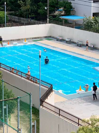 今週は雨で入ることができなかったクラスの水泳授業の予備日になっています。
