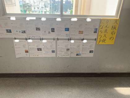 3年生の教室前には、3年生が作った大阪のおすすめスポットが掲示されていました。