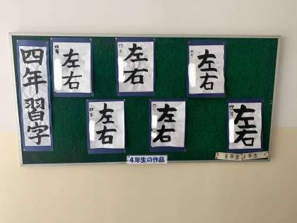 掲示板には4年生の習字の作品が掲示されていました。
