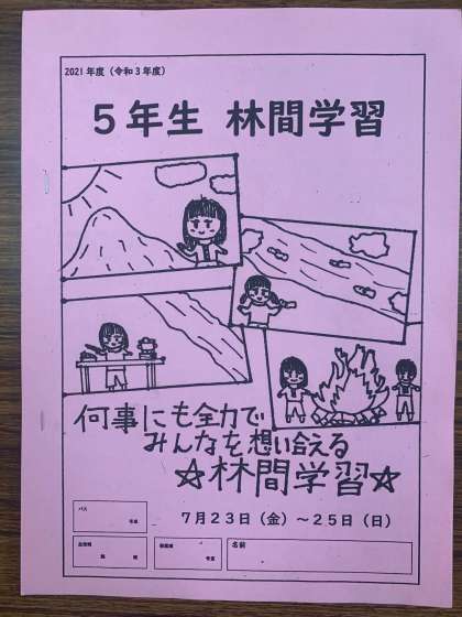 5年生が林間に向けて各係での活動を行っていました。その後、5年生の代表の人が校長室まで林間学習のしおりを届けてくれました。まん延防止重点措置が続いていますが、林間学習は実施します。感染症対策は行ったうえで楽しい2泊3日にしましょう。