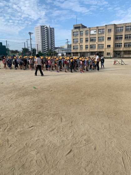3年生が「いってきまーす」と元気に海遊館への遠足に出発しました。