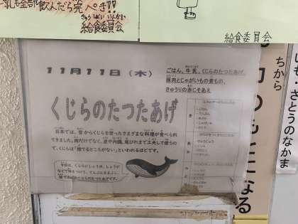 今日の給食にはなんとクジラが登場です。
