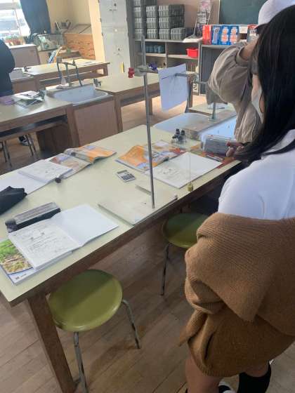 班で手分けして、ストップウオッチで時間を図ったり記録したり、振り子を動かしたりしています。