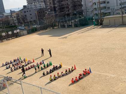 運動場では1年生と2年生が一緒に体育をしている姿が見られました。