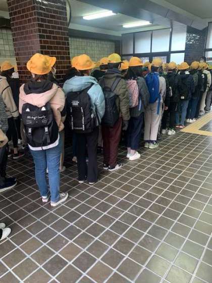7時半に学校を出発し、今は梅田で阪神電車の出発を待っています。