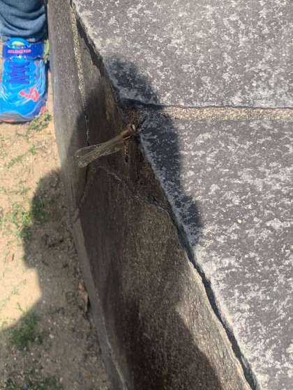 中庭の池で1年生がふ化したてのトンボを発見しました。