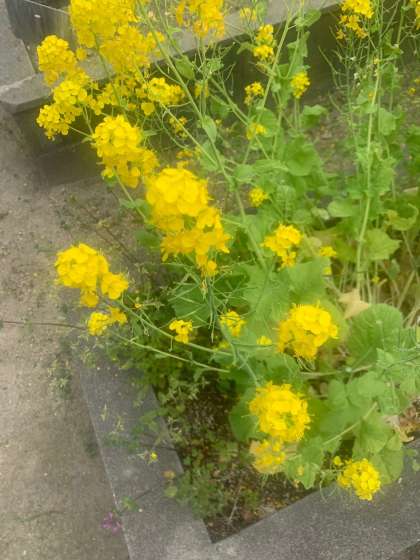 中庭ではアブラナがきれいに咲いています。