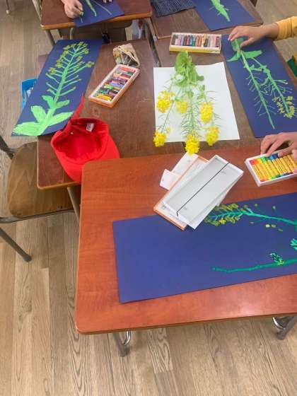 3年生がアブラナの絵を描いています。