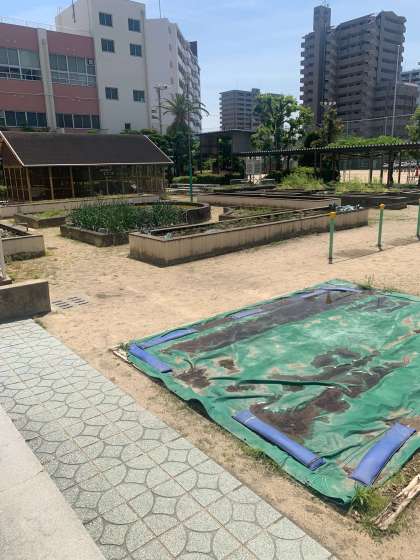 運動場で元気いっぱい遊んでいる子もたくさんいますが、鴫野小学校は中庭も休み時間の人気の場所です。蝶の幼虫を見つけたり、ダンゴムシを見つけたり、楽しい時間を過ごしています。