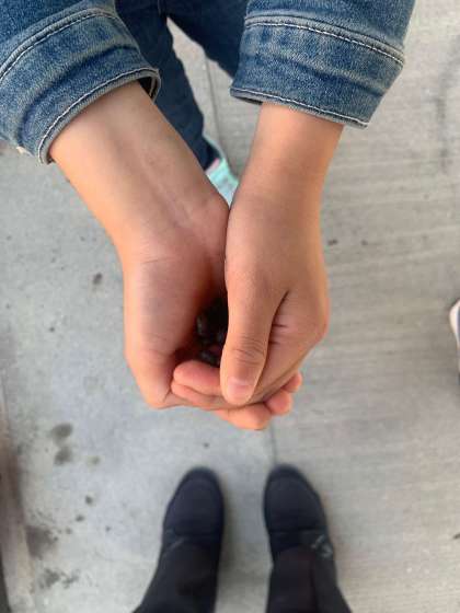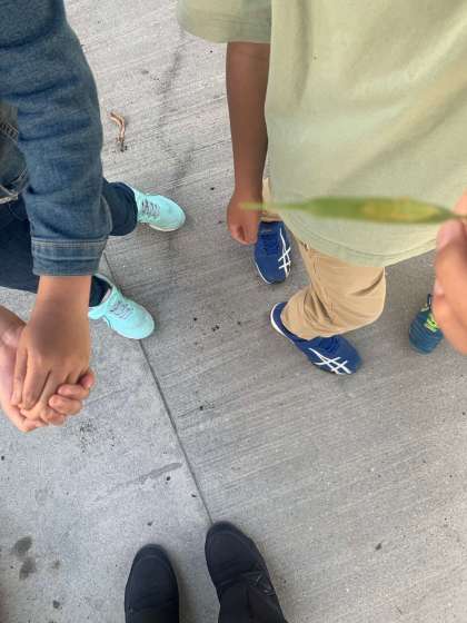 2年生が見つけた幼虫やダンゴムシを見せてくれました!とても楽しそうです。