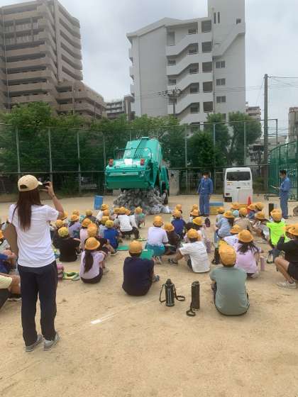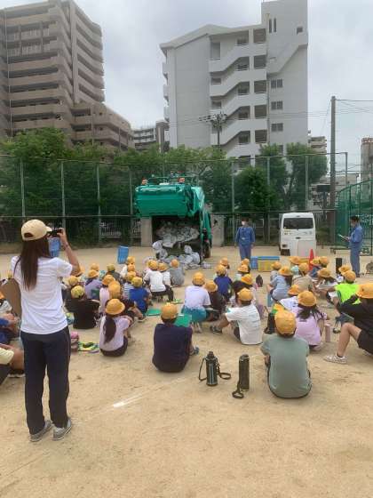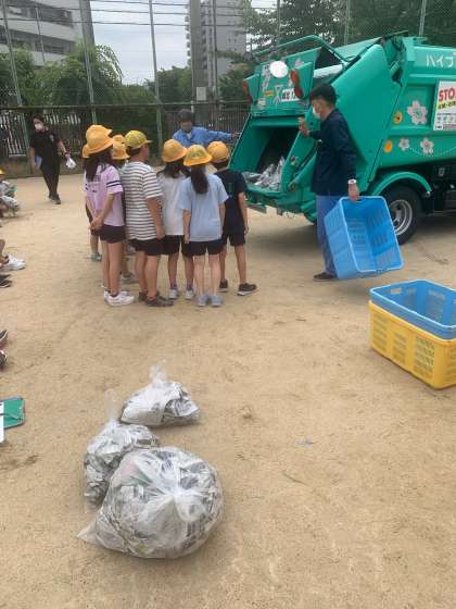 ゴミを入れたり、出てくるところを見せてもらったり、実際のゴミ収集の様子を学習することができました。