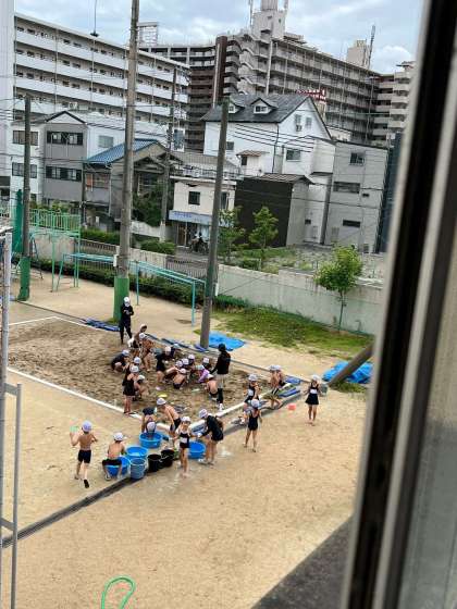 朝からの雨はやみ、3時間目からは水泳授業が行えています。