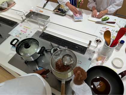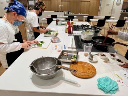とても充実した施設で調理実習に挑戦しています。