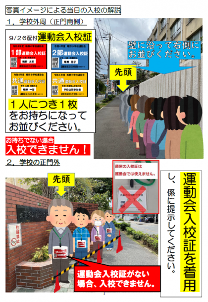 運動会について2・・・運動会当日の保護者の入校と退場について