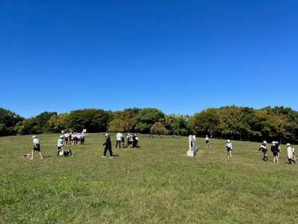 お天気がいいので、広い芝生で遊ぶのも楽しいです。