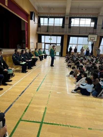 PTAの代表、鴫野西交番の警察官、地域の代表と見守り隊の方に来ていただき、感謝のお手紙を渡し感謝の気持ちをお伝えしました。