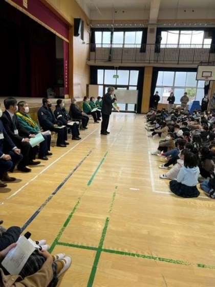 毎日、登下校を見守っていただいている皆さんに感謝の気持ちを伝える「ありがとうの会」を行いました。