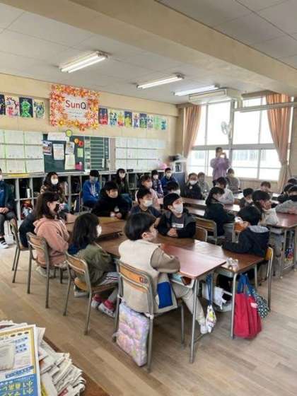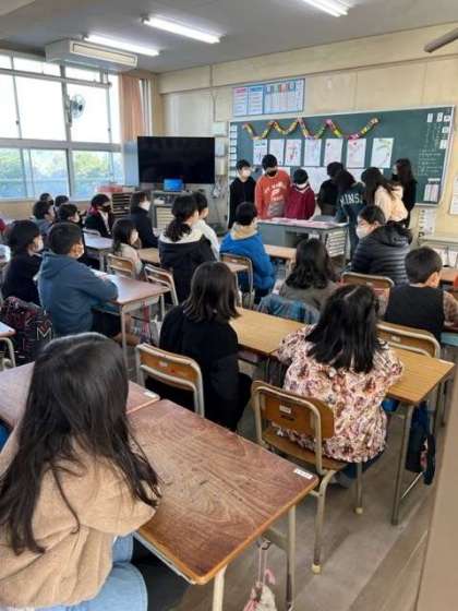 コロナ前は講堂で全学年があつまって実施していましたが、今はファミリーで各教室に分かれて実施しています。