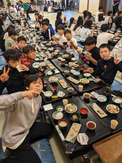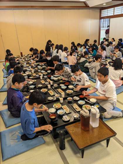 朝食の時間です。まだ7時過ぎの早い時間帯ですが、みんな元気にもりもり食べてます!