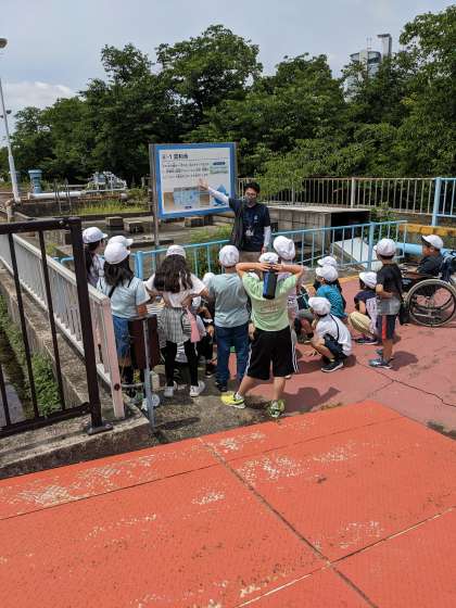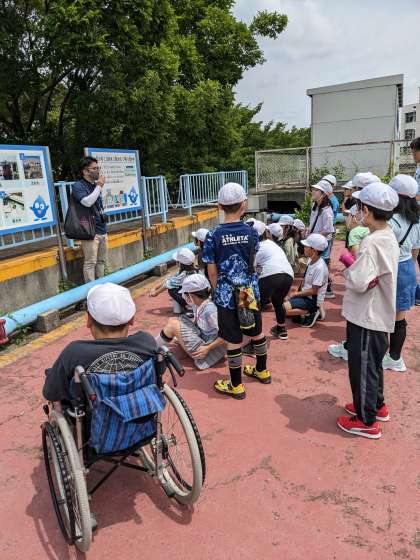 淀川から取り入れた水は様々な行程を経て、私たちの生活用水になります。担当者の説明をしっかり聞いてます!