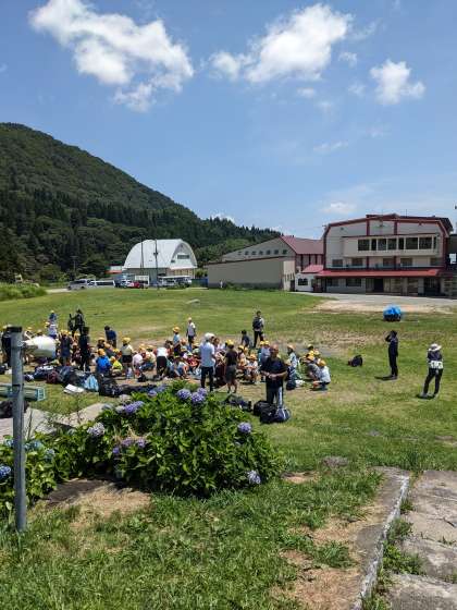 先ほど鉢伏高原に到着し、各クラスごとに記念写真をとりました。今からお昼ご飯です。