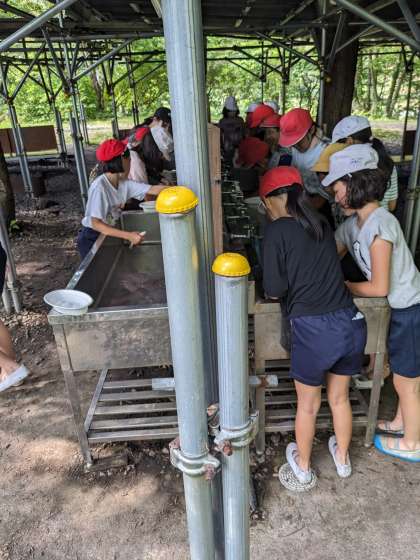 つかんだアマゴは塩を揉み込み水洗いし、串にさします。準備ができたら炭火で焼きます!