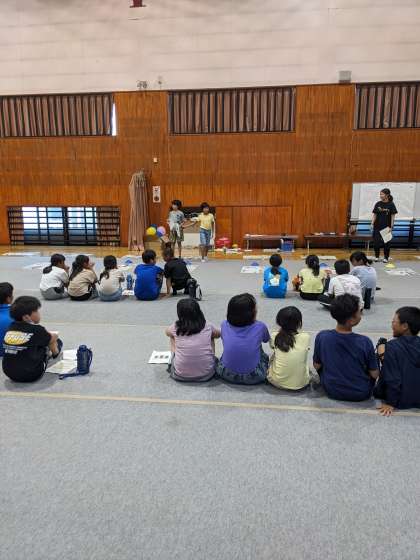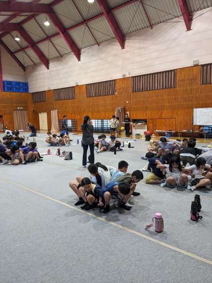 まずは全員背中合わせになり、座った状態からのスタンドアップ!息を合わせて、みんなで立てるかな?