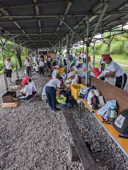 登山が終わり、少しの時間、高原遊びをしました。今から野外炊飯でカレーを作ります。みんなで協力してカレーライスを作ります!