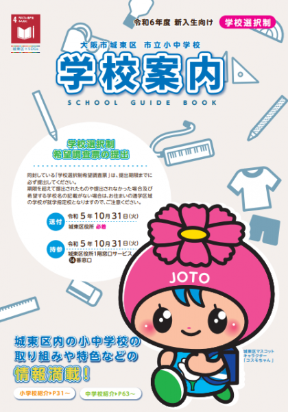 詳しくは、令和6年度新入学生向け 学校選択制にかかる大阪市城東区市立小中学校「学校案内」(https://www.city.osaka.lg.jp/joto/page/0000606892.html)の令和6年度区内市立小学校受入可能児童数・学校公開日等一覧(学校案内19ページ)(https://www.city.osaka.lg.jp/joto/cmsfiles/contents/0000606/606892/p19.pdf)をご参照ください。