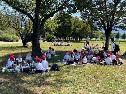 野外、そしてみんなで食べるとより美味しいです!保護者の皆様には、早朝よりお弁当の用意ありがとうございました。