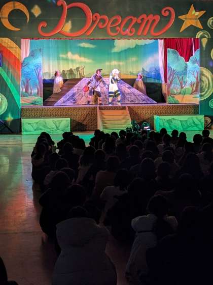 昨日、劇団夢団による『嵐の夜に』が上演されました。久しぶりの劇鑑賞でした。嵐の夜に出会い秘密の友だちになった山羊のメイと狼のガブ。2人の物語を通して、子どもたちは希望を持って生きていくことや、勇気の大切さを感じたことと思います。