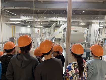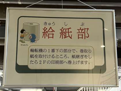 前回と同様に輪転機など、DVDを視聴しながら、実物を見学させていただきました。この輪転機は1時間あたり、なんと12万部を印刷するそうです!他にも給紙部や積込み仕分けシステムの様子など、詳細に見学しています。機械によるオートメーションにより、製品の均一化を図っているのですね。