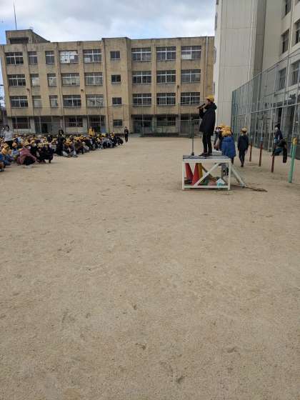 ちょっと寒い児童集会の時間でしたが、どのファミリー班にも笑顔が溢れ、心温まる交流の時間となりました。