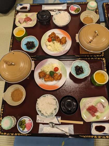 夕食の時間です。おかずがたくさんあって、とても美味しそうです!