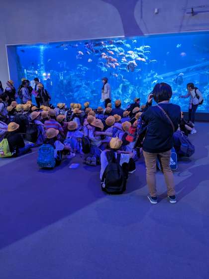 入口でクラス写真を撮り、今から館内見学前の諸連絡です。最後の活動になりますね。