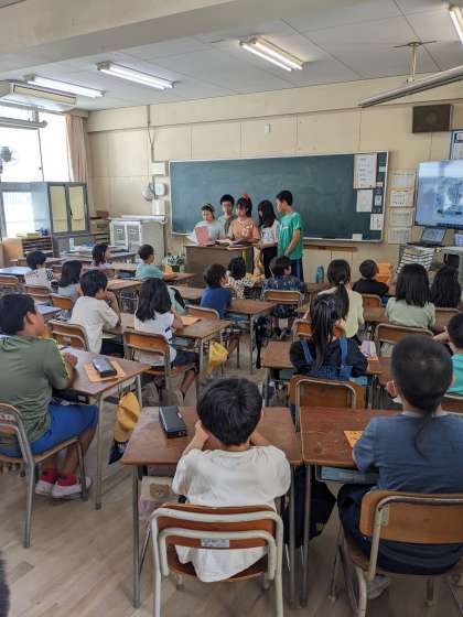 来週実施される『大阪城オリエンテーリング』に向け、ファミリー班ごとに集まりました。6年生が様々な説明や、注意点などを話しながら進めてくれました。
