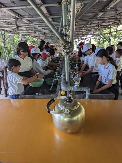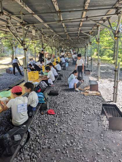 野菜を切ったり、お米をといだり、火をおこしたり。役割分担して協力しながら作ります。