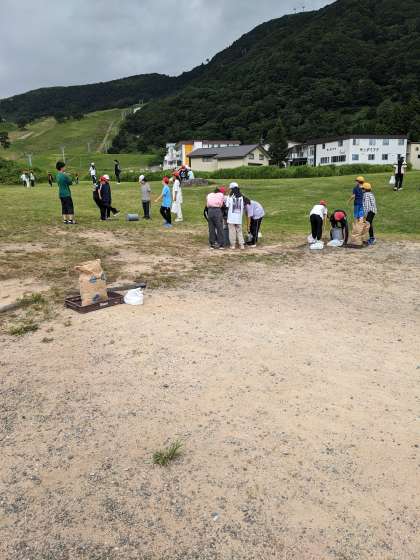 アイスクリームの原料が出来上がりました。高原に行き、原料を樽型の容器に入れます。みんなで容器を転がすことで、中に入っている氷と大量の塩の働きにより、アイスクリームができあがります。
