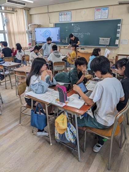 複雑な形をした立方体の体積を求めています。どのように工夫したらいいか班で話し合っています。