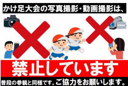 昨日の連絡とも重なりますが、本日のかけ足大会でも、普段の学習参観と同様、写真撮影・動画撮影は禁止しています。ご理解・ご協力の程、よろしくお願いいたします。