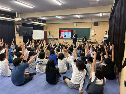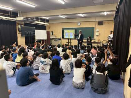 本日、6年生は租税教室で税金について学びました。アニメを視聴して税金のない社会になると、私たちの生活が立ち行かなくなることを知りました。また、税金の種類や使い方について税務署の方からお話を聞きました。