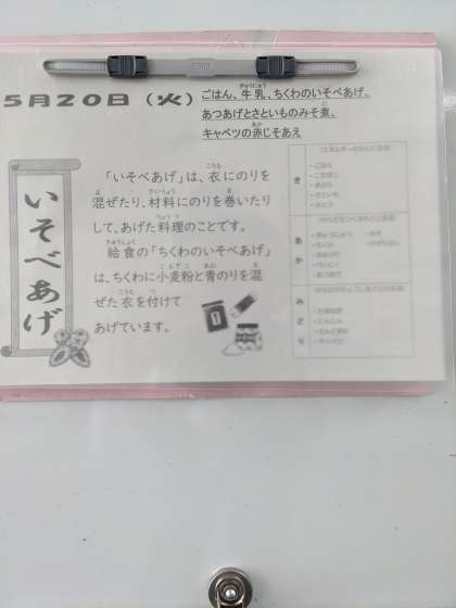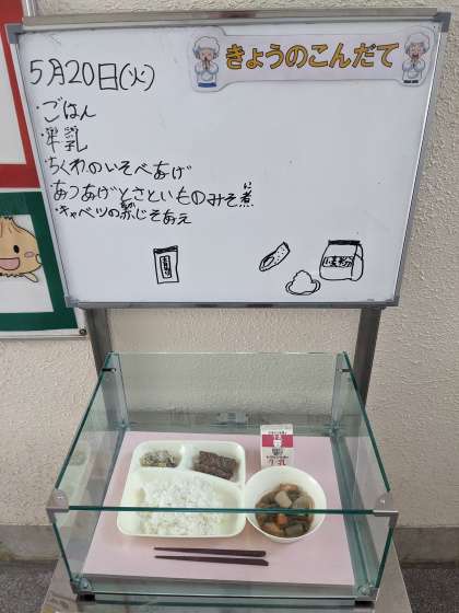 今日はちくわの磯辺揚げと、厚揚げとさといものみそ煮の和風献立。キャベツの赤じそでさっぱりとしたあと口になりました。ごちそうさまでした。