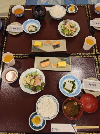 朝食の時間です。しっかり食べて今日も1日元気に過ごしましょう!