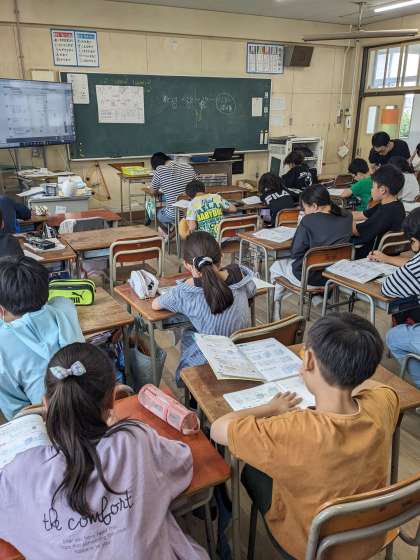 直方体、立方体の体積のまとめで練習問題に取り組んでいます。